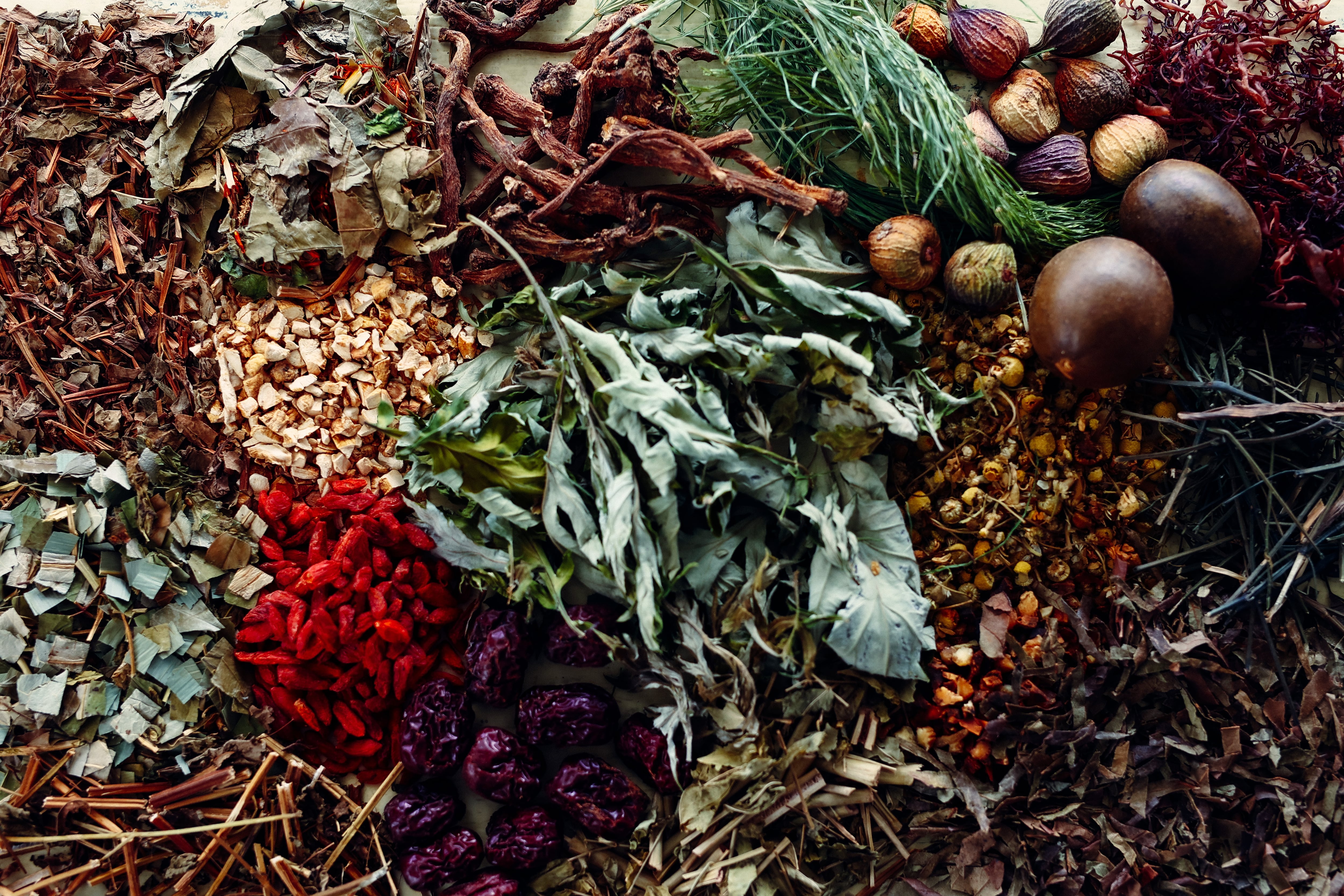 ナツメ、サラシア、マタタビ、エビス草の種子、紅参、アガリクス、ルイボス、